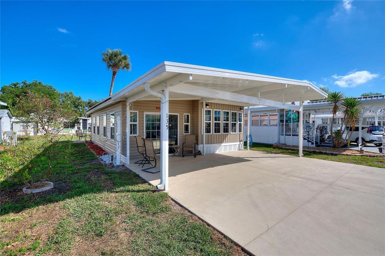 Beautiful MOVE IN READY FURNISHED home located in the Citrus ridge 55+ community in Davenport. This beautiful and meticulously maintained home is ready for it new owner!!! Fabulous floor plan and built for efficiency. Relax in the large approximately 300 square ft. family room. The exterior of this home offers double pane windows, a carport, with a large driveway that will allow for 4 car parking. Enjoy the evenings or breakfast in the morning on the brick paver patio. Need storage? this home has a BIG shed included. The A/C has been updated and has a newer instant hot efficient water heater. The Citrus Ridge offers many amenities such as a clubhouse, pool, pickleball, shuffle ball, BBQ area, and fitness center. Very Low HOA dues and NO CDD!! Citrus Ridge is located approx. 1.5 miles from I-4 just off Hwy #27 in Davenport. Medical facilities, Hospital, restaurants, major shopping, grocery stores are located within 2 miles of this community, Sam's Club and Walmart are under construction just out side this community. Best of all the owner of this beautiful home owns the land!! NO lot rent.