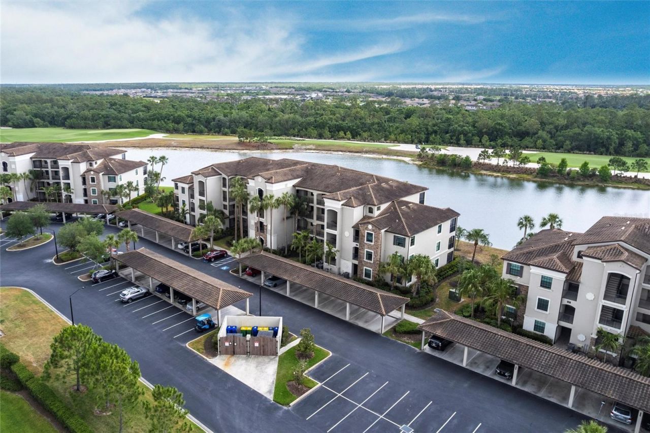 This beautifully furnished 2-bedroom, 2-bath condo in Lakewood National offers a perfect mix of luxury, comfort, and stunning views. Located on the third floor, the private screened lanai overlooks expansive golf course and lake scenery, providing a tranquil setting for morning coffee or evening relaxation. Built in 2017 and offered fully furnished, the light-filled interior features an open layout, elegant crown molding, and a stylish kitchen with granite countertops, stainless steel appliances, and ample cabinetry. The spacious primary suite includes dual closets and a modern en-suite bath with a walk-in shower, while the guest bedroom and full bath provide comfortable accommodations for guests. With covered parking, in-unit laundry, and a worry-free location outside flood and evacuation zones, this condo offers both convenience and peace of mind. Located within the gated Lakewood National Golf Club community, residents enjoy world-class amenities including two world-class Arnold Palmer-designed golf courses, a resort-style pool and spa, tiki bar, clubhouse dining, tennis, pickleball, a fitness center, and more. And for investors, this is resort-style living paired with an excellent investment opportunity. Not only fully furnished, but fully equipped as a move-in ready resort getaway. Whether you're searching for a full-time residence, seasonal getaway, or income-producing property, this condo offers the ultimate Florida lifestyle.