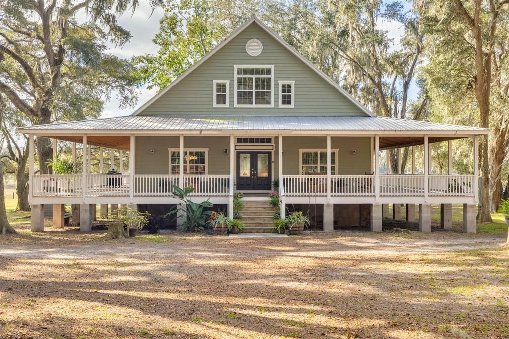 Edit mortgage details for a more accurate paymentThis house is a real stunner! - Lovely custom-built lakefront property with all the charm of old Florida. Located on approximately 2.5 acres in a quiet country setting of Brooksville. The first thing you'll notice is the spectacular 12-foot-wide wrap-around porch and the steeply sloped tin roof setting off the whole house. There is a lovely pool with a deck and a gazebo in the backyard with a winding brick path. There is also a small greenhouse, and a 3-car carport as well as a shed and well-house. Old stately trees dot the property and waterbirds are abundant on the lake and you may even have a few sandhill cranes make a personal visit. The property has a new fence on two sides and a gate at the entrance. Inside the house, you'll be wowed by the beautiful hardwood floors and the towering ceilings in the kitchen/dining and living room spaces. Windows galore in the main living area welcome the beautiful views and the light and are the perfect vantage point to watch the gorgeous sunsets - of course, so is the large wrap-around porch. Motorized blinds let you control the amount of light or give you a sense of coziness at night. This house offers a custom-designed dream kitchen. Any cook or baker will appreciate the 48 gas stove with 8 burners and double ovens along with a pot filler, lighted dishwasher, draw microwave, hidden double trash bins soft-close doors on all cabinets and drawers. Set the mood with over-and-under cabinet lighting. A spectacular large quartz island with a multitude of storage graces the middle of the kitchen and there is a very large separate pantry. Beautiful eggshell solid-wood cabinets, some with glass insets to show off your finer things, a double porcelain sink and stainless appliances complete this dream kitchen. Upstairs is an open loft - also filled with light. Currently used as a bedroom, there is also a half bath up there but it is already plumbed for a shower should you choose to add one, in addition, there is a little alcove that is perfect for a small office and tons of storage. The loft area is wired with cat 5. A separate laundry room houses a washer/dryer as well as an additional refrigerator and freezer (no warranties on either - they are sold as is) In addition to the beautiful interior of the home, there is a large enclosed space below the home, with a concrete floor and walls this space would be perfect as a woodworking, pottery or other type of studio - equipped with electrical outlets and a closet space this room is ideal for creative types. These sellers have done almost too much to delineate here, The house was a wow before but now it's WOW in caps - from the kitchen and bathroom complete remodels to the blinds, the pool, the complete overhaul of the well, as well as a new water filtration system, installation of a propane grill, the carport, fencing, etc. You won't be disappointed! This was intended to be the seller's forever home, but unexpected circumstances make their loss your gain. Come enjoy Florida's natural beauty under the secluded grandeur of the old oaks and ever-changing skies.